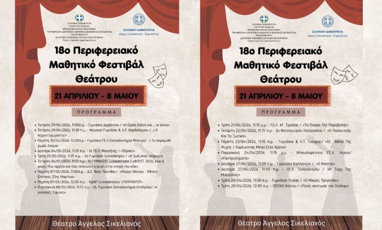 Αυλαία για το 18ο Μαθητικό Φεστιβάλ Θεάτρου στο Ξυλόκαστρο – Η νεολαία ανεβαίνει στη σκηνή!