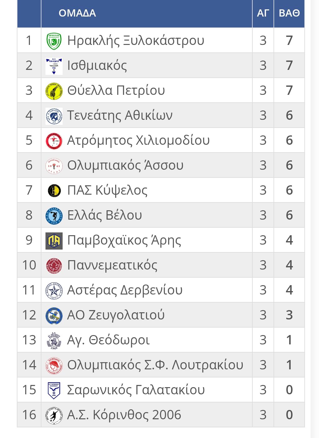 Ο Ηρακλής Ξυλοκάστρου πήρε την εντός έδρας νίκη (3-0) με αντίπαλο το Ζευγολατιό, και ανέβηκε στην πρώτη θέση της βαθμολογίας. Η Θύελλα Πετρίου έφυγε με τους τρεις βαθμούς της νίκης απο το Βέλο (0-1), και ”συγκατοικει” με τον Ηρακλή στην πρώτη θέση του βαθμολογικού πίνακα. Σπουδαία εκτός έδρας νίκη πήρε και ο Ισθμιακός απέναντι στον Τενεάτη Αθικίων (0-2), και συμπληρώνει την πρώτη τριάδα του βαθμολογικού πίνακα.