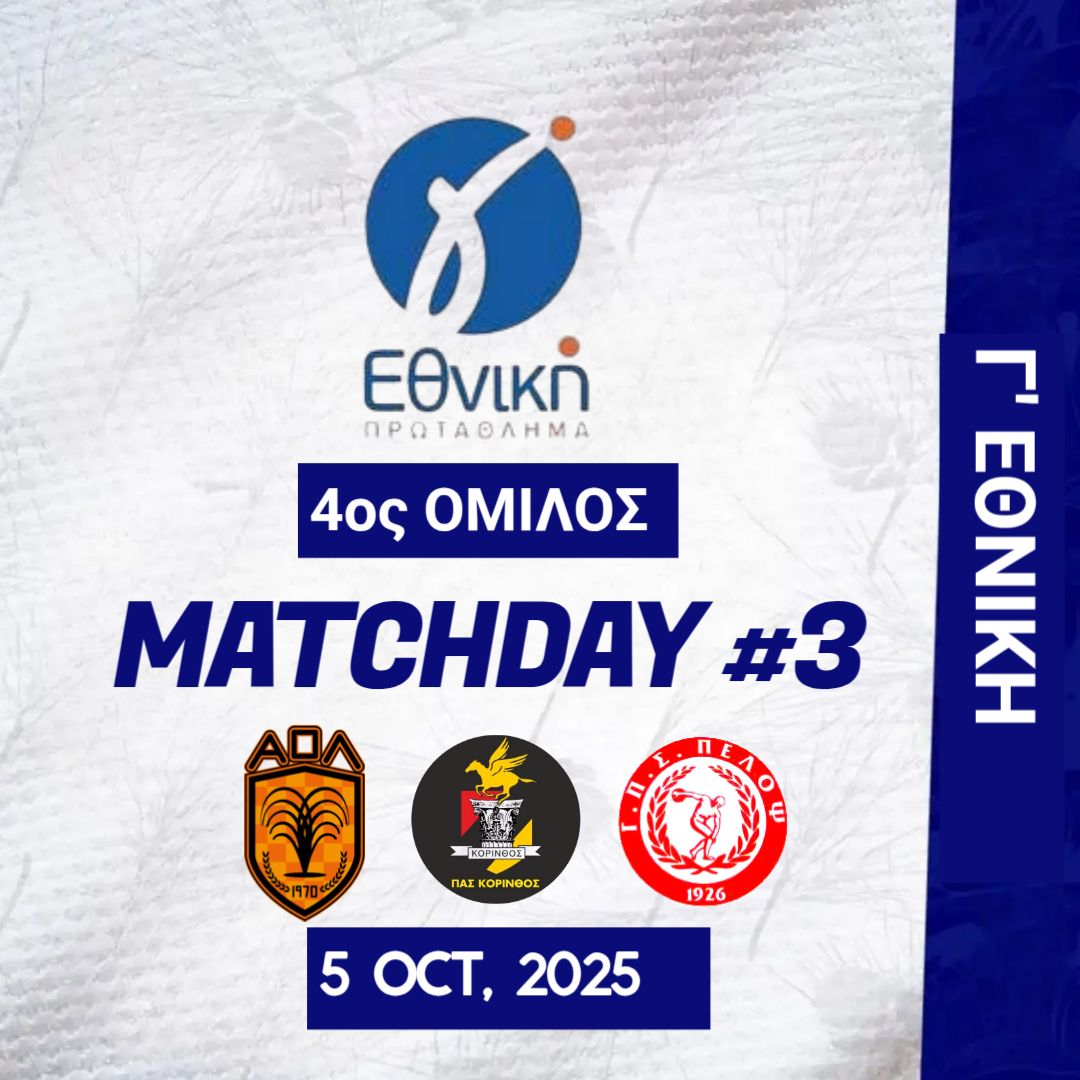 Φουλ αγωνιστική δράση στο πρωτάθλημα της Γ’ Εθνικής, με την διεξαγωγή της 3ης αγωνιστικής, την Κυριακή 5/10/2025.