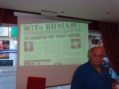 Η κα Γιαννούλη άνοιξε το χορό των ομιλιών με το ιστορικό της έκδοσης της πρώτης εφημερίδας στον κόσμο, που ανάγεται στα χρόνια του Μεγάλου Αλεξάνδρου και ακολούθησε ο κ. Γιαλοψός με το ιστορικό της έκδοσης του ΒΗΜΑΤΟΣ και τα βιώματά του, επί είκοσι συναπτά χρόνια.