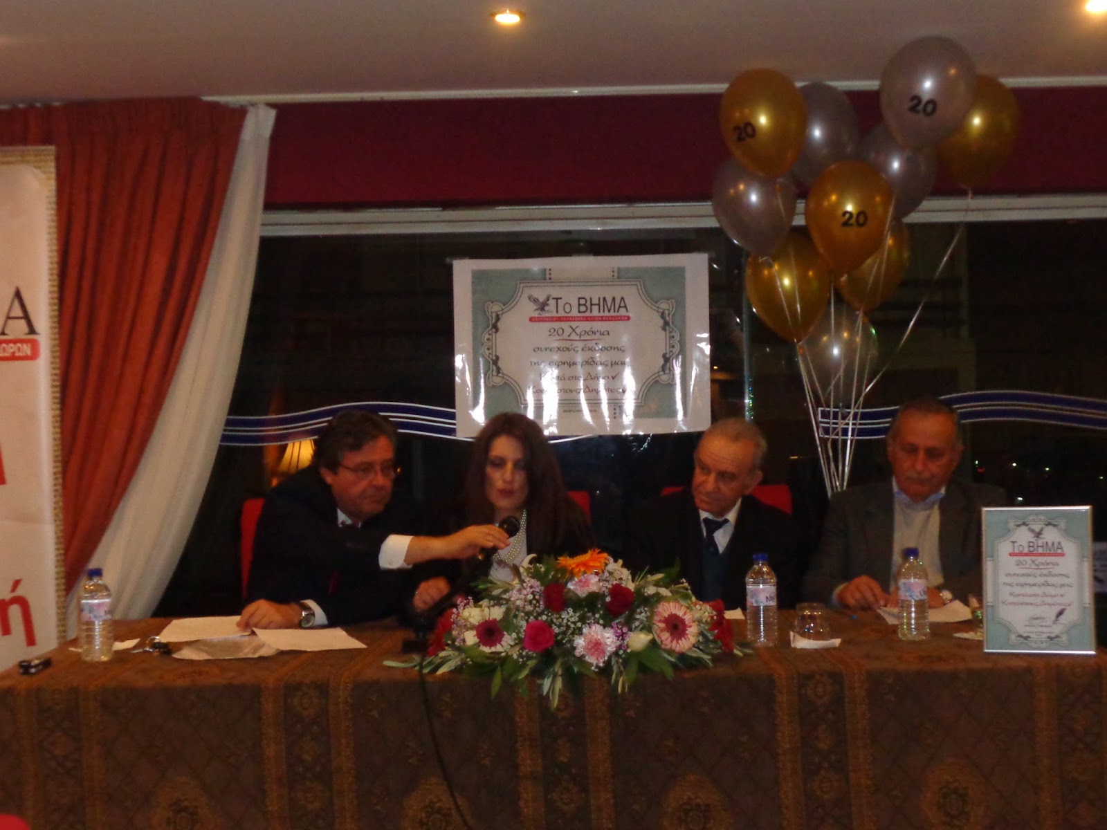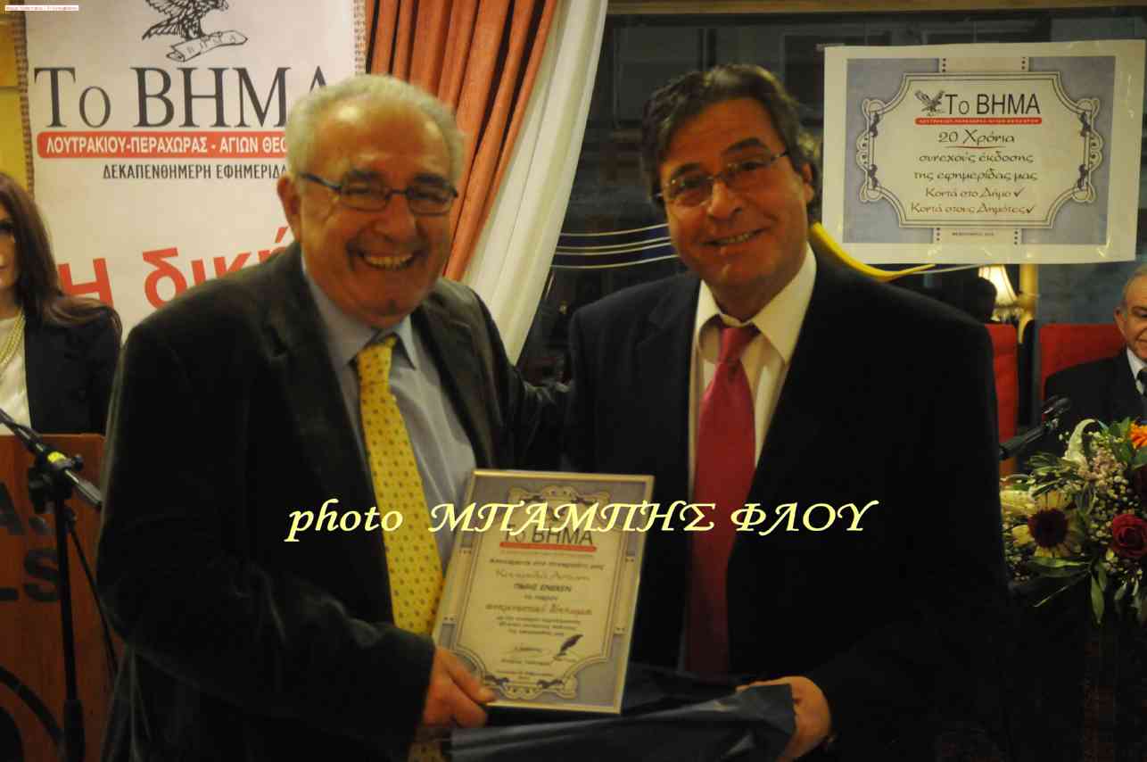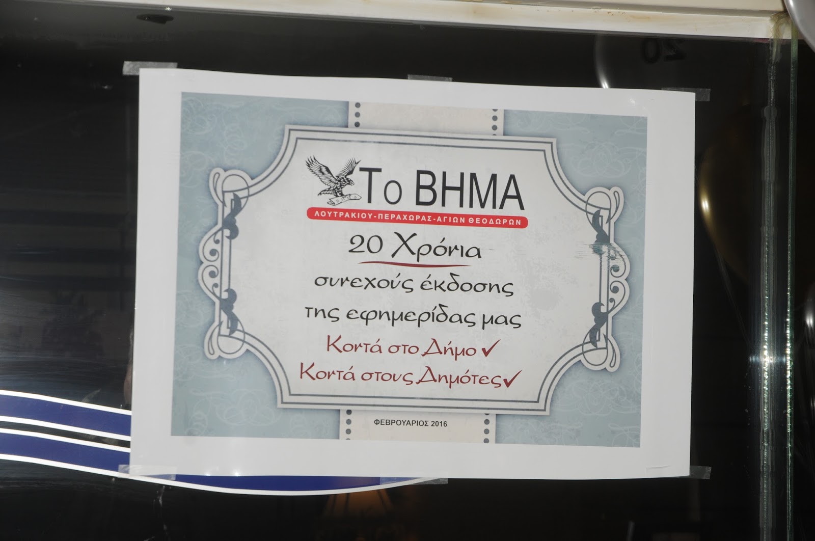 Με μια καλά οργανωμένη εκδήλωση, η εφημερίδα ”ΤΟ ΒΗΜΑ ΛΟΥΤΡΑΚΙΟΥ-ΠΕΡΑΧΩΡΑΣ-ΑΓΙΩΝ ΘΕΟΔΩΡΩΝ”, γιόρτασε τα 20 χρόνια από την έκδοση του πρώτου της φύλλου, παρουσία του Προέδρου της Ένωσης Κεντρώων κ. Βασίλη Λεβέντη και του Βουλευτή Κορινθίας κ. Χρίστου Δήμα.