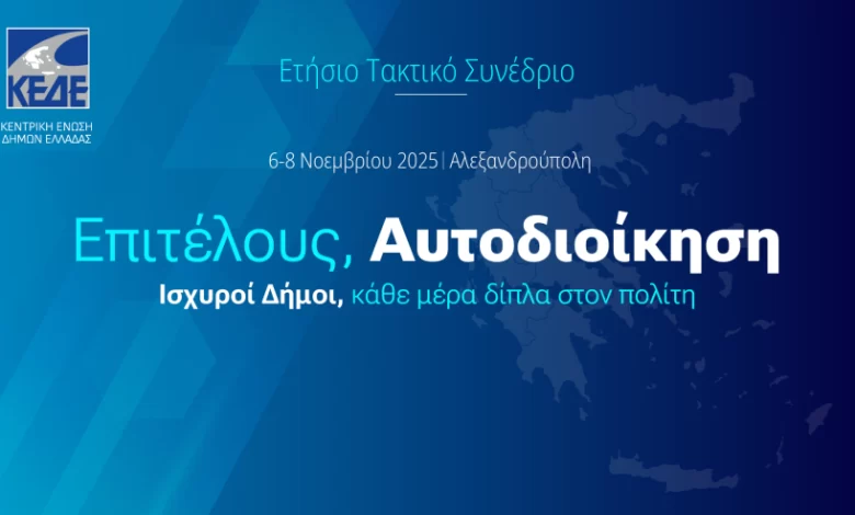 Στην Αλεξανδρούπολη πραγματοποιείται από τις 6 έως τις 8 Νοεμβρίου το Ετήσιο Τακτικό Συνέδριο της Κεντρικής Ένωσης Δήμων Ελλάδας (ΚΕΔΕ), το σημαντικότερο θεσμικό γεγονός για την Τοπική Αυτοδιοίκηση της χώρας.