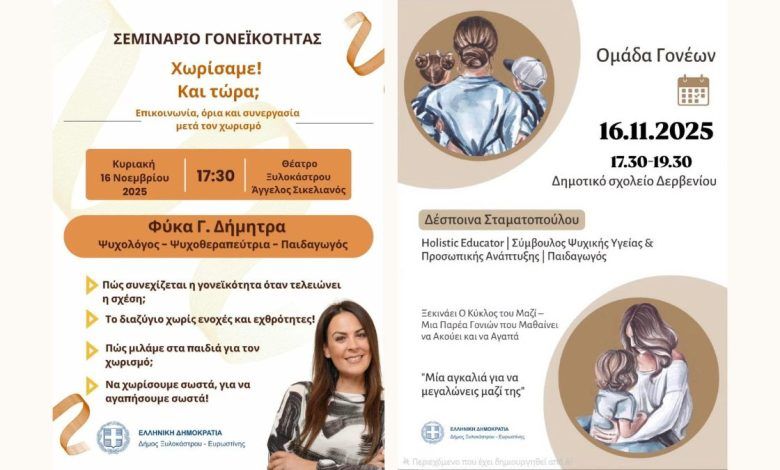 Ο Δήμος Ξυλοκάστρου – Ευρωστίνης συνεχίζει με επιτυχία τον κύκλο των Σχολών Γονέων, μέσα από δράσεις που στοχεύουν στην ενδυνάμωση των γονέων και τη στήριξη της σύγχρονης οικογένειας.