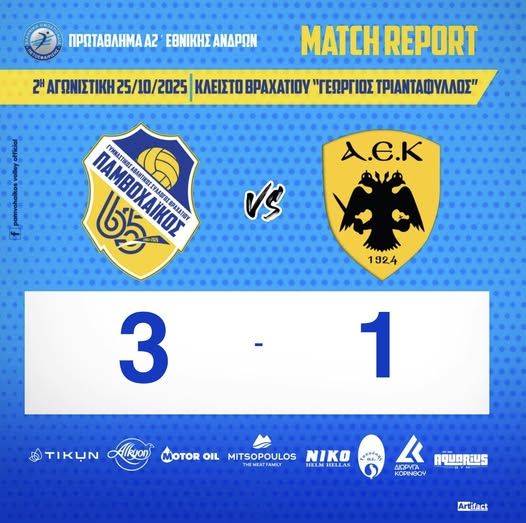 Σε μια βραδιά γεμάτη πάθος, ένταση και συγκίνηση, ο Παμβοχαϊκός επικράτησε της Α.Ε.Κ. με 3-1 σετ για το πρωτάθλημα της Α2 Εθνικής Ανδρών, σε ένα κατάμεστο γήπεδο που θύμισε ένδοξες εποχές του συλλόγου.